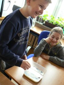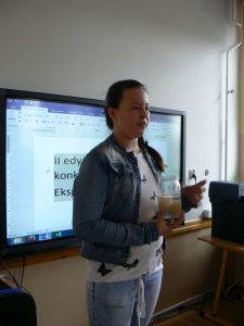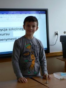 Część doświadczeń wykonanych przez uczniów poparta była prezentacjami multimedialnymi zawierającymi własne zdjęcia i filmy dotyczące przebiegu doświadczeń wykonanych w domu.