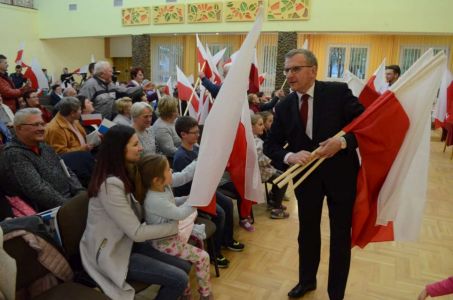 W tym roku honorowy patronat nad imprezą sprawowali starosta brzozowski Zygmunt Błaż i wójt gminy Haczów Stanisław Jakiel. Wspólnie rozdali uczestnikom koncertu flagi biało-czerwone, których zakup sfinansował starosta z Gminnym Ośrodkiem Kultury i Wypoczynku w Haczowie. Starosta w swoim wystąpieniu wspomniał, że pamięć o Konstytucji 3 Maja czy o święcie maryjnym jest niezmiernie ważna dla naszej tradycji. – Ważne jest, że w śpiew angażują się osoby, w różnym wieku, od dzieci, poprzez młodzież, po dorosłych i seniorów – stwierdził starosta Z. Błaż.