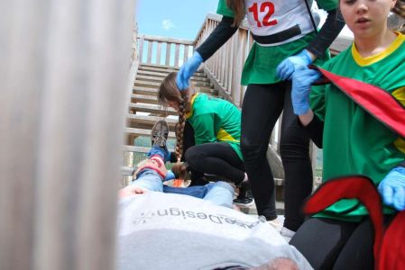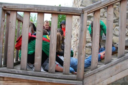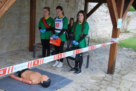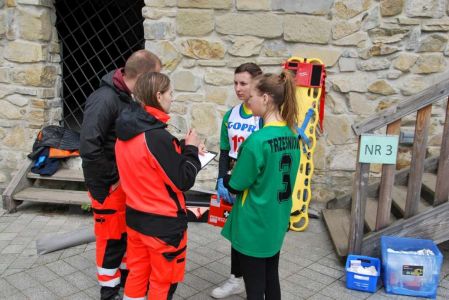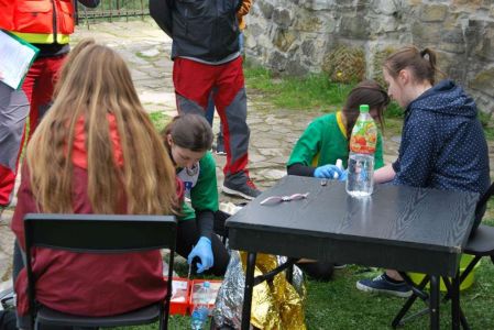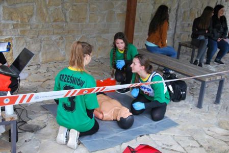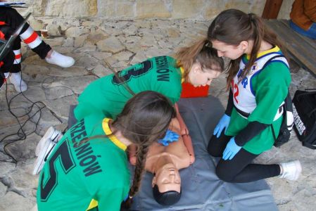 Nasze zawodniczki po raz kolejny wykazały się wysokimi umiejętnościami w tej trudnej i wymagającej wysokich umiejętności rywalizacji. Dziewczyny musiały poradzić 4 ogniskach urazowych opatrując poszkodowanych z oparzeniami, złamaniami, zatrzymaniem krążenia. Musiały wykazać się umiejętnością wykorzystania defibrylatora i prawidłowo przeprowadzić resuscytację na elektronicznym fantomie. Dodatkowo każda drużyna pisała test wiedzy o GOPR i zasadach udzielania pierwszej pomocy. Wszystko to odbywało sie na terenach sanockiego zamku, drużyny miały okazję bezpłatnie zwiedzić Muzeum Historyczne, w którym znajduje się wspaniała kolekcja ikon z bieszczadzkich i beskidzkich cerkwi oraz obrazów i pamiątek po Zdzisławie Beksińskim. Nasza drużyna w ostatecznej klasyfikacji zajęła a III miejsce, I miejsce wywalczyła drużyna z Gimnazjum ze Strachociny, a drugie miejsce zajęło Gimnazjum z Beska. Drużynę do zawodów przygotowywał Janusz Tys oraz nasi strażacy z OSP Trześniów, Damian Prugar, Rafał Szmyd.