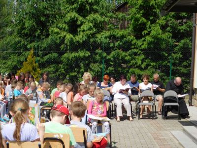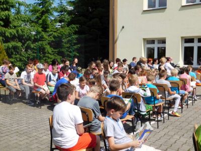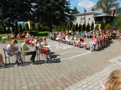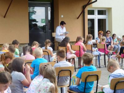 Z celami ogólnopolskiej akcji zapoznała nas organizatorka akcji szkolnej K. Wojtoń. Następnie przedszkolaki przeczytały wiersze Jana Brzechwy i Marii Konopnickiej W świat legend polskich zaprowadzili nas p. dyrektor Alina Prorok, pani Bożena Krępulec - bibliotekarka, ksiądz proboszcz Witold Szmyd oraz uczennica klasy piątej Urszula Kaczor. Po prezentacji głośnego czytania wszyscy czytali swoje książki .Akcja trwała do godziny 11.00. Na zakończenie uczestnicy otrzymali słodkości . Pani dyrektor złożyła życzenia z okazji Dnia Dziecka.