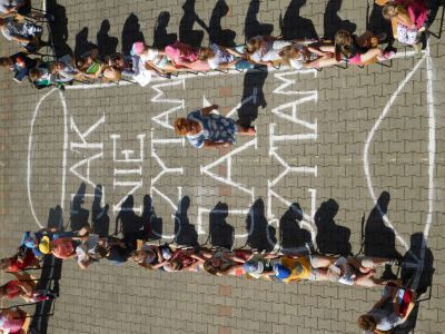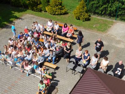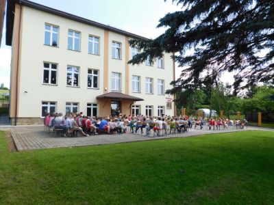 Wspólne czytanie odbyło się na podwórku Zespołu Szkół w Trześniowie.