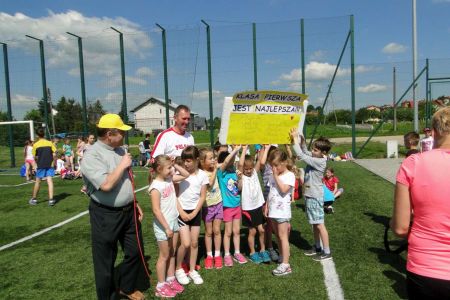 Dzieci świetnie się bawiły, twardo ze sobą rywalizowały. Klasy wykrzykiwały przygotowane hasła dopingujące sportowców. Było dużo zabawy, radości, śmiechu i oklasków. Szczególnie dużo braw zebrała klasa pierwsza, która nie dość, że najmłodsza, to liczy zaledwie 10 uczniów, więc wszystkie pierwszaki brały udział w każdej konkurencji, gdy w starszych klasach uczniowie w poszczególnych konkurencjach mogli się zmieniać.