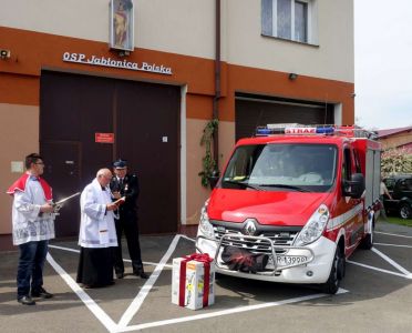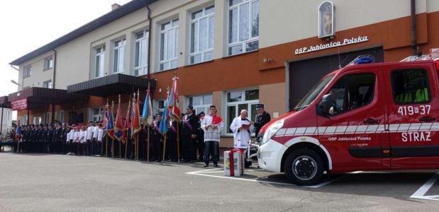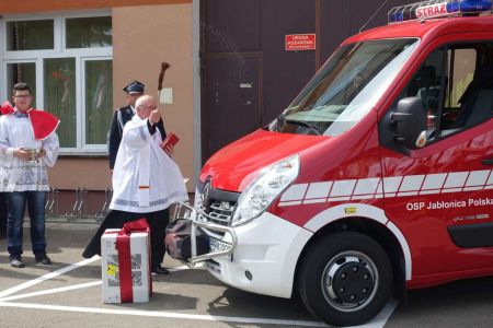 Uroczystą mszą świętą rozpoczęła się uroczystość poświęcenia i przekazania nowego lekkiego samochodu ratowniczo-gaśniczego Renault Master dla OSP w Jabłonicy Polskiej.