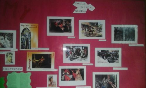 Okolicznościowa wystawa na korytarzu szkolnym, na której wykorzystano m.in. materiały udostępnione przez Gminną Bibliotekę Publiczną w Haczowie (reprodukcje dzieł malarskich nawiązujących do treści dramatu), przybliżyła zainteresowanym tematykę tradycji ludowych, która inspirowała nie tylko S. Wyspiańskiego, ale i W. Tetmajera.