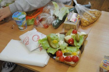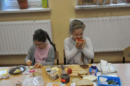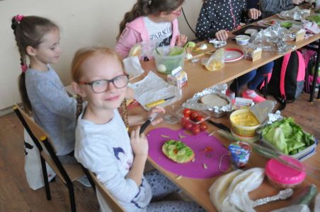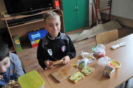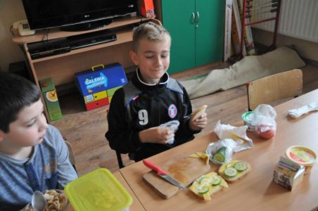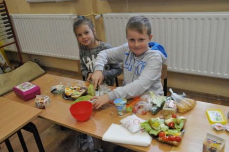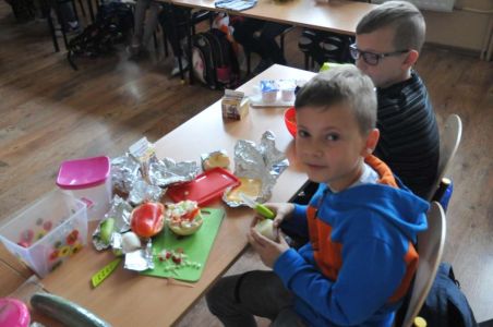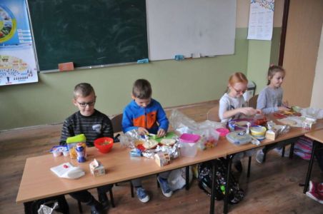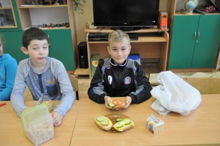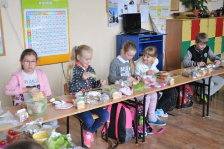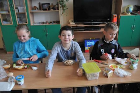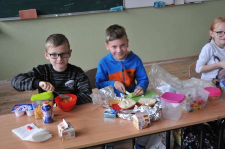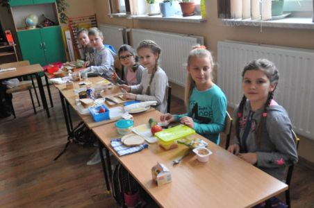 Dzięki rodzicom, którzy dostarczyli produkty potrzebne do zorganizowania zdrowego śniadania, pojawiło się pieczywo różnego rodzaju , masło, wędliny, sery, jajka ,pomidory, ogórki, papryka, sałata, szczypiorek, płatki śniadaniowe i jogurty oraz mleko.