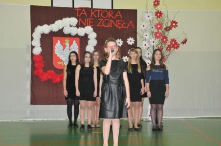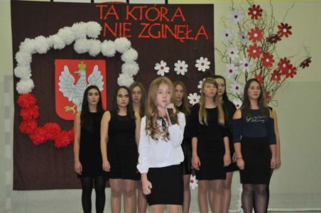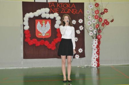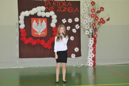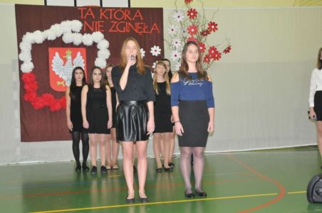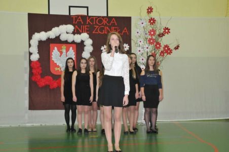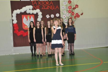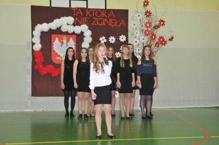 Uroczystość została przygotowana przez p. Jolantę Nycz. Pod jej kierunkiem uczniowie klas szkoły podstawowej oraz gimnazjum zaprezentowali wzruszający i podniosły program artystyczny, który obejrzała cała społeczność szkolna. Na szczególną uwagę zasługiwały występy wokalne w wykonaniu zarówno chóru jak i solistek. Program był przypomnieniem niełatwych dziejów naszego kraju i swoistą lekcją historii.