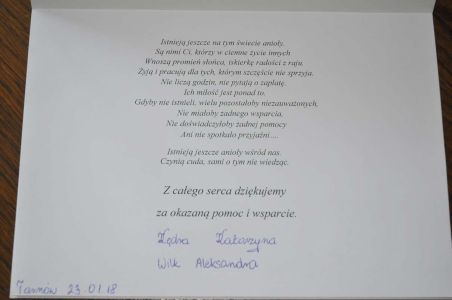 24 stycznia naszą Szkołę Podstawową w Jasionowie odwiedziło dwoje sympatycznych, młodych ludzi: Dominka Kędra i Romek Zarebczan. Przywieźli podziękowania za udział w zbiórce zabawek, bajek, kolorowanek, kredek i wielu innych rzeczy dla chorych dzieci. Nasza szkoła wsparła inicjatywę Oli Wilk, byłej pacjentki Oddziału Onkologicznego w Szpitalu Uniwersyteckim w Prokocimiu. Ola szczęśliwie pokonała chorobę i przyrzekła sobie, że będzie pomagać cierpiącym dzieciom. W tym pięknym przedsięwzięciu wspierają ją Katarzyna Kędra- była uczennica naszej szkoły oraz jej córka Dominika ze swoim chłopakiem Romkiem.