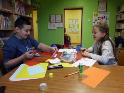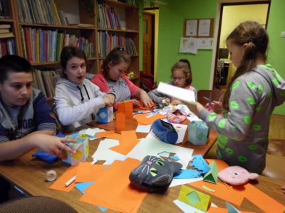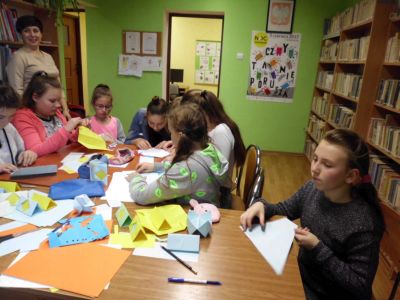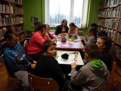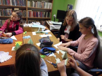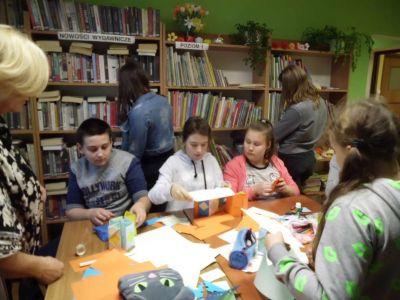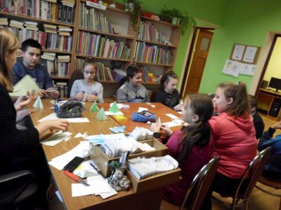W listopadzie i grudniu do grona uczestników dołączyli uczniowie Szkoły Podstawowej we Wzdowie należący do szkolnego Koła Przyjaciół Biblioteki. Młodzież wraz z opiekunem Panią Sylwią Lutecką wzięła udział w zajęciach, na których wykonano papierowe piórniki, choinki, aniołki oraz zakładki do książek.