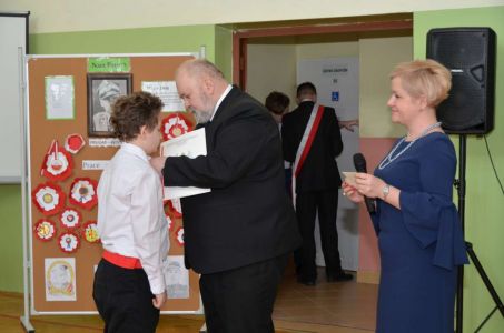 Tradycyjnie podczas Święta Patrona wręczone zostały nagrody pieniężne dla uczniów osiągających najwyższe wyniki w nauce w pierwszym semestrze. Otrzymały je Patrycja Krawiec - uczennica szkoły podstawowej oraz Julita Pełdiak uczennica gimnazjum. Pierwszą nagrodę ufundował ks. Proboszcz Witold Szmyd, a drugą osoba anonimowa. Dyrektor Szkoły wręczyła także podziękowanie dla Ryszarda Proroka za bezinteresowną pomoc, zaangażowanie i wkład pracy na rzecz Szkoły Podstawowej w Trześniowie. Ostatnim punktem uroczystości było ogłoszenie wyników konkursów z wiedzy o Patronie Szkoły, plastycznego, piosenki patriotycznej oraz strzeleckiego. Pani Dyrektor nagrodziła upominkami zarówno zwycięzców jak i uczestników.