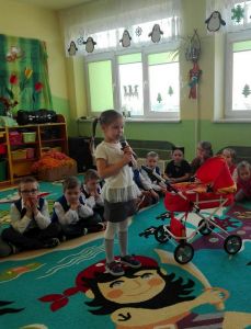 Święto zapomniane, a przecież ważne, postanowiono przywrócić do kanonu imprez przedszkolnych i grupa starszaków w tym wydarzeniu pomogła. Dla dzieci występujących była to wspaniałą okazja do przełamania nieśmiałości i tremy przed publicznym występem. Przedszkolaki zaprezentowały swoje umiejętności aktorskie i taneczne. Każde dziecko miało możliwość zaśpiewania do mikrofonu urywka piosenki dla kobiet pt. "Marcowy kwiatek". Dziewczynki w sposób humorystyczny ukazały trud kobiet w czasie sprzątania czy rozterki podczas wybierania się na przyjęcie.