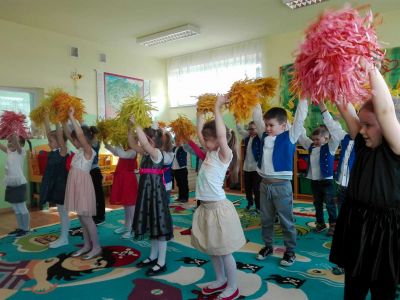 Taniec z pomponami był okazją do wykazania się umiejętnościami rytmicznymi dzieci a zebranej w sali publiczności występ dostarczył wielu pozytywnych przeżyć artystycznych.