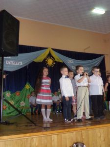 Niedzielne spotkanie było również okazją do wyśpiewania i recytacji życzeń dla zaproszonych mam i tatusiów z okazji Dnia Matki i Dnia Ojca. Swoje piękne programy przedstawiły dzieci z klas 0 – 3 SP, przygotowane przez swoich wychowawców.