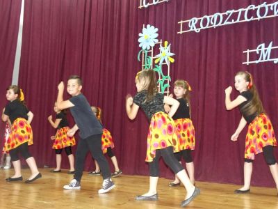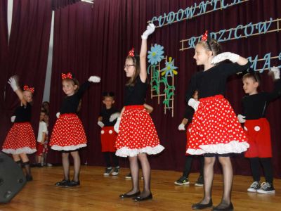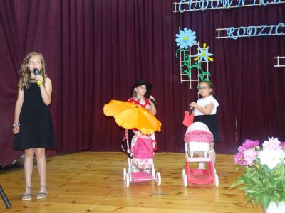 Uczniowie klasy II i III przedstawiali zalety swoich tatusiów, a Estera P. zaśpiewała piosenkę pt." Co powie tata". Nie zabrakło też scenek humorystycznych: "Dwie mamy" oraz Królewna Śnieżka i 7 krasnali" w wykonaniu młodszych uczestników występu.