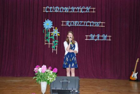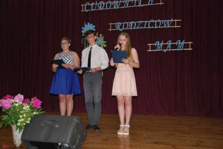Pani dyrektor Joanna K. powitała przybyłych gości i rodziców. Następnie uczniowie gimnazjum przedstawili program "Portret Matki Wyjątkowej", w którym składali życzenia Matkom kochającym dzieci za wszystko i mimo wszystko, Matkom opiekującym się dziećmi chorymi, Matkom, którym los nie szczędził zmartwień i trosk, Matkom przeżywającym rozstanie ze swoimi pociechami.