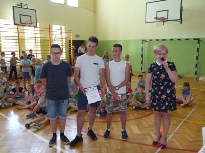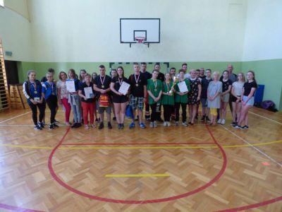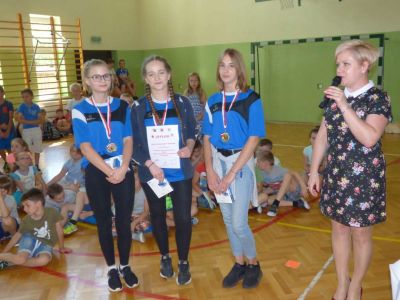 Zwycięska drużyna otrzymała z rąk Pani Dyrektor Joanny Kaczor okazały puchar, medale, dyplom i nagrody rzeczowe dla każdego zawodnika.