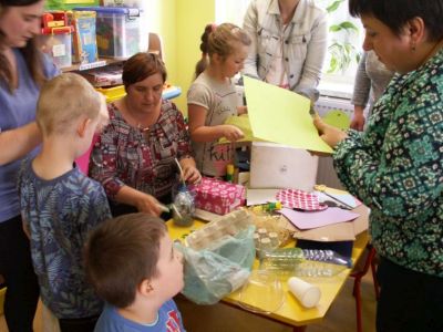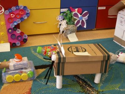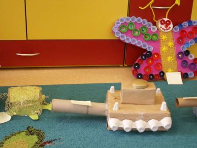 Po turnieju pełnym wrażeń nadszedł czas na konkurs ekologiczny pt.” Śmieciosztuka - najciekawsza rzeźba z materiałów recyklingowych”. Podczas trwania konkursu zadziwiała nie tylko pomysłowość prac, ale również ich wykonanie i wykorzystanie do tego celu surowców wtórnych. Rozstrzygnięcie konkursu odbędzie się po głosowaniu nakrętkami na poszczególne prace przez rodziców i dzieci z całego przedszkola.
