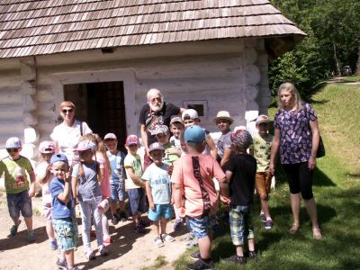 Wycieczka do Skansenu miała na celu pokazanie dzieciom jak ludzie żyli dawniej, a także jaką pracę wykonywali i jakich używali do tego narzędzi. Przedszkolaki z podziwem i z zainteresowaniem oglądały eksponaty i chaty na terenie całego Skansenu.