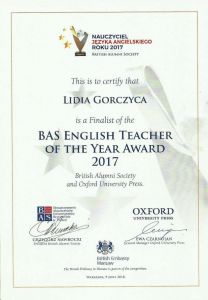 Była to już trzecia edycja konkursu zorganizowana przez British Alumni Society BAS- Stowarzyszenie Absolwentów Uniwersytetów Brytyjskich w Polsce oraz Oxford University Press. Celem nagrody jest podniesienie rangi nauczyciela poprzez pokazanie przykładów dobrej praktyki i najlepszych profesjonalistów w zawodzie, a tym samym wnieść wkład w jakość nauczania języka angielskiego w polskich szkołach.