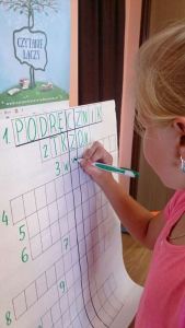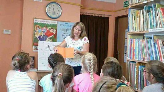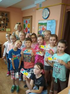 W dniu 20 czerwca 2018 r. bibliotekę odwiedzili uczniowie klasy II wraz z wychowawczynią Panią Jolantą Pyzia. Dzieci chętnie podzieliły się informacją o ostatnio przeczytanych książkach i o swoich ulubionych bohaterach. Następnie dowiedziały się jak zbudowana jest książka i jak nazywają się jej poszczególne elementy. Dla sprawdzenia wiedzy na ten temat dzieci rozwiązały krzyżówkę, której hasło „czytanie łączy” odczytaliśmy wspólnie. Porozmawialiśmy sobie również na temat dbałości i poszanowania książek. W dalszej części spotkania naszym czytelnikom została przybliżona postać wielkiego pisarza i przyjaciela dzieci i młodzieży – Kornela Makuszyńskiego, z zachętą do odwiedzenia podczas wakacyjnych wędrówek muzeum poświęcone pisarzowi w Zakopanem w willi Opolanka. Następnie z dużą uwagą wysłuchali fragmentu książki Anny Czerwińskiej – Rydel: „Słońcem na papierze – wesoła opowieść o Kornelu Makuszyńskim. Po zakończonym czytaniu dzieci ochoczo odpowiadały na zadane pytania dotyczące treści książki. W dalszej części spotkania dla dzieci zostały przygotowane zagadki czytelnicze. Oczywiście wszyscy znakomicie poradzili sobie z odpowiedziami.