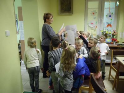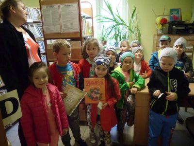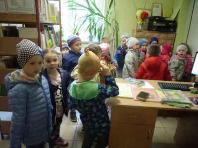 Tematem spotkania było zapoznanie z biblioteką i pracą bibliotekarza. Przedszkolaki zwiedziły placówkę , przeglądały książki znajdujące się na półkach – szczególnie bajki. Dzieci dowiedziały się: w jaki sposób zapisać się do biblioteki, jak należy się w niej zachować, poznały zasady wypożyczania i poszanowania książki. W trakcie pobytu w bibliotece dzieci wysłuchały czytanych głośno bajek, rozwiązywały zagadki związane z postaciami z bajek i baśni.