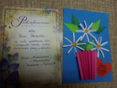 Na zakończenie spotkania dzieci przekazały pani bibliotekarce laurkę z podziękowaniem za miłe spotkania które wypadły w Dniu Bibliotekarza.
