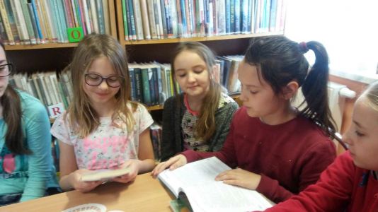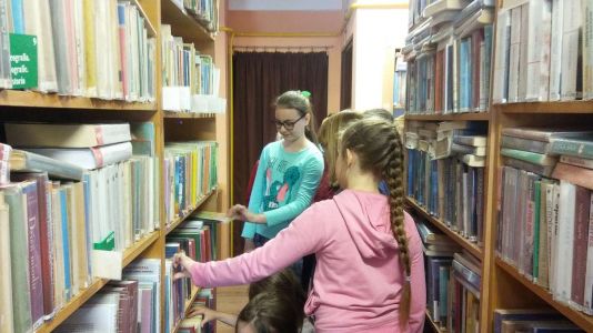 Uczniowie mieli okazję dowiedzieć się więcej o tym, czym jest biblioteka, jakie są jej zadania i czym na co dzień zajmuje się bibliotekarz. Poznali księgozbiór tutejszej biblioteki i zasady katalogowania. Na zakończenie spotkania uczniowie wraz z bibliotekarzem przeczytali fragment książki Pawła Wakuły: „Jagiełło pod … prysznicem. Opowieści o władcach Polski”. Na pamiątkę spotkania otrzymali zakładki do książek.