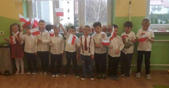 Dzień Niepodległości stał się bardzo radosnym dniem w naszym przedszkolu i mamy nadzieję, że zapadnie on w pamięci naszych „Małych Polaków".
