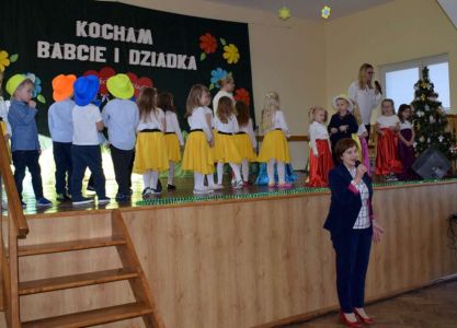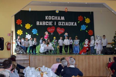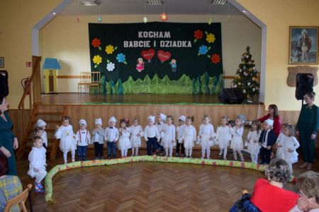 Tradycyjnie jak co roku, tak i w tym, w dniu 15 i 16 stycznia dzieci z naszego przedszkola spotkały się ze swoimi dziadkami i babciami z okazji Dnia Babci i Dziadka. Spotkania ze względu na wygodę gości w tym roku odbywały się grupami w Sali Domu Strażaka. Dziadkowie mogli wygodnie usiąść i dobrze widzieć swoje pociechy na scenie.