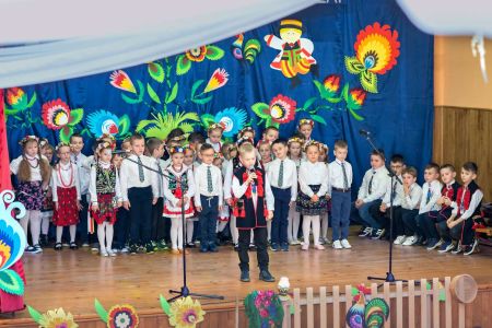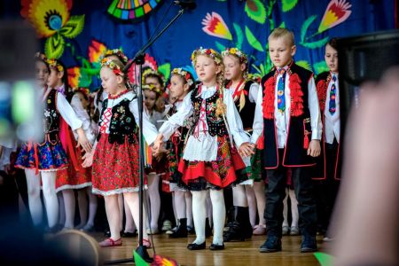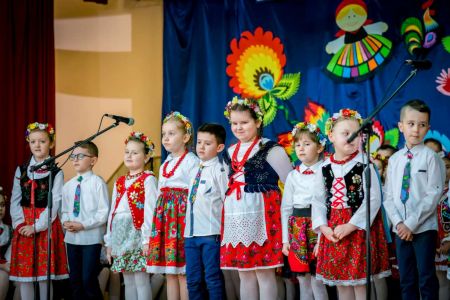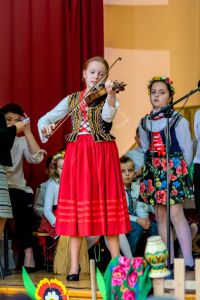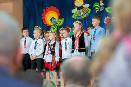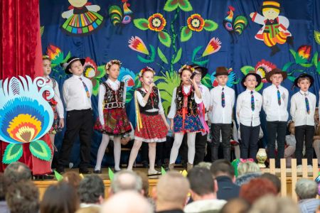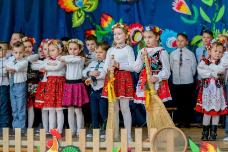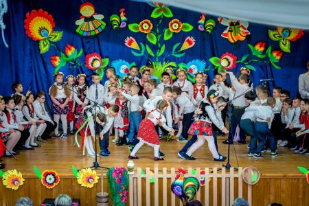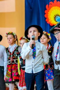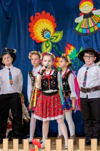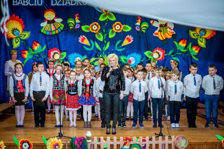 Spotkanie otwarła Pani Dyrektor Iwona Pelczarska, witając przybyłych gości. W pięknie udekorowanej sali uczniowie klas: ‘0’, I, II i III, przygotowani przez swoich wychowawców, Panie: A. Kwolek, J. Kielar, M. Rachwał, B. Krauz, zaprezentowali program artystyczny o tematyce ludowej. Ubrani w piękne ludowe stroje, przedstawili bardzo dobrze przygotowany układ choreograficzny oraz śpiewali tradycyjne polskie, ludowe pieśni