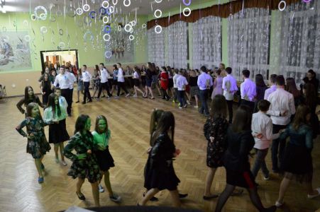 Zabawa Karnawałowa w tym roku, podobnie jak i w ubiegłym zaczęła się polonezem. Polonez jest narodowym polskim tańcem korowodowym o uroczystym charakterze. Dziś tańczą go nie tylko maturzyści na studniówce, ale i uczniowie szkoły podstawowej. Tradycyjny korowodowy taniec na ¾ z synkopowym rytmem, który jako jedyny zachował popularność do dziś, zatańczyli w tym roku nie tylko uczniowie naszej szkoły ale także nauczyciele i rodzice. Ponadto młodzież i dzieci zatańczyły „Belgijkę” – taniec integracyjny. W zabawie udział wzięli uczniowie z różnych klas od zerówki do ósmej.