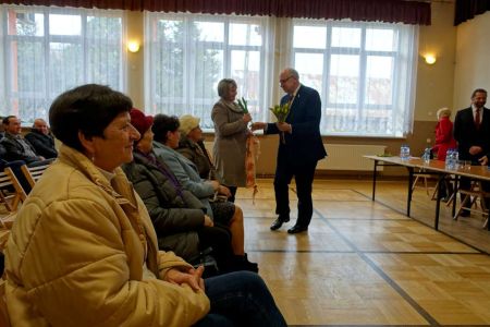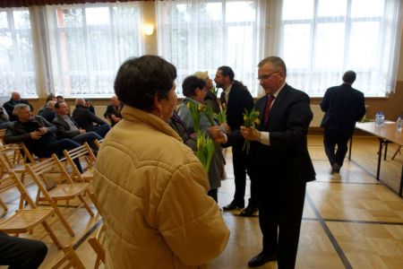 W związku ze Świętem Kobiet przypadającym właśnie w dniu zebrania, Pan Sołtys złożył życzenia obecnym na zebraniu Paniom i w jego imieniu zaproszeni Panowie wręczyli Kobietom kwiaty.