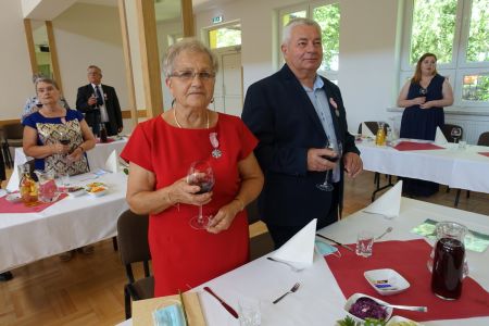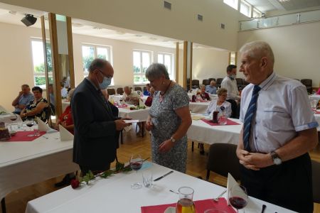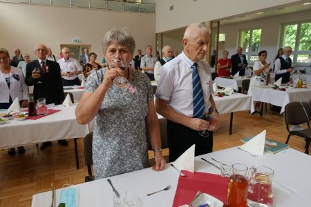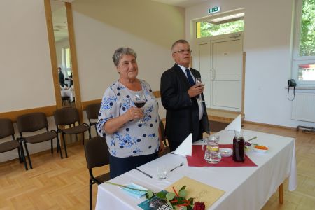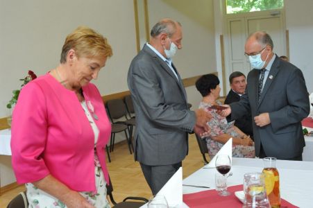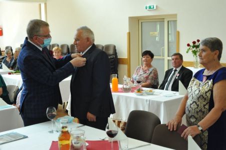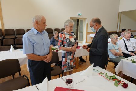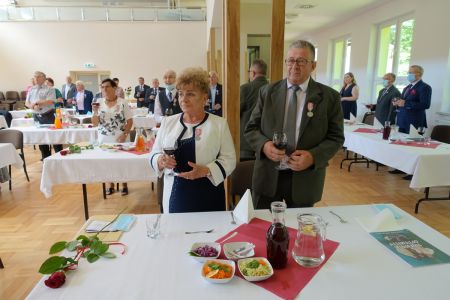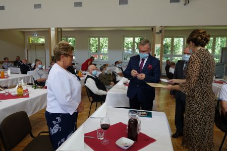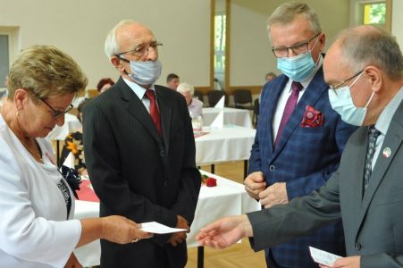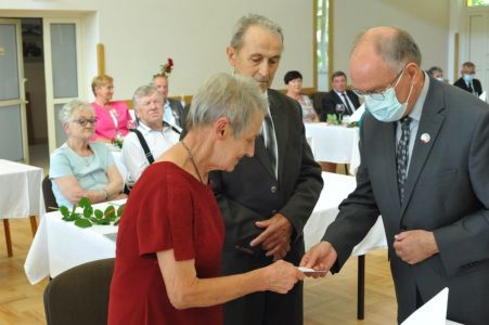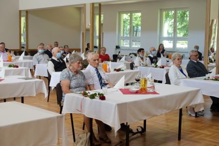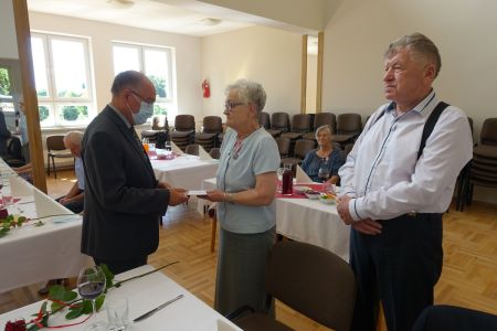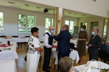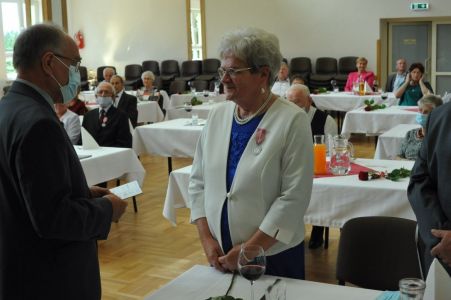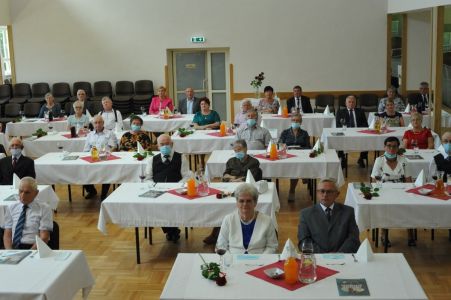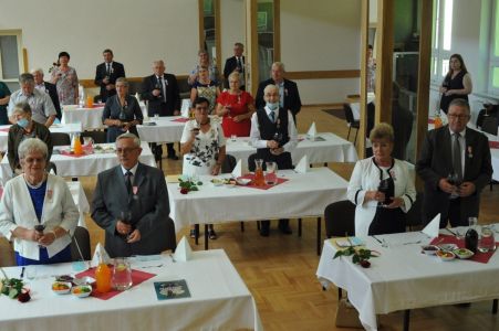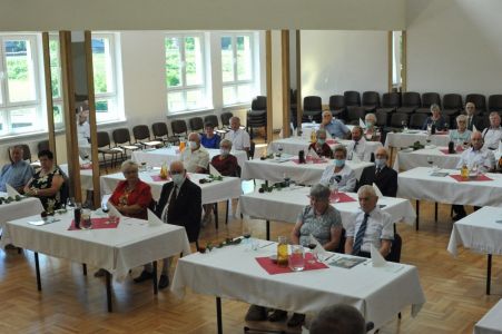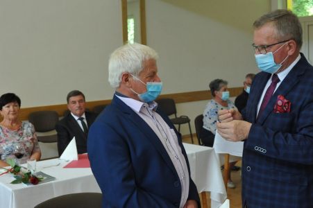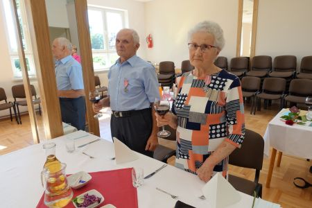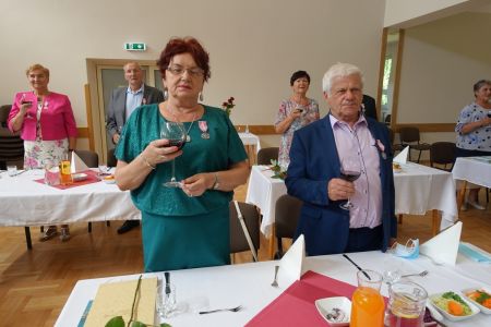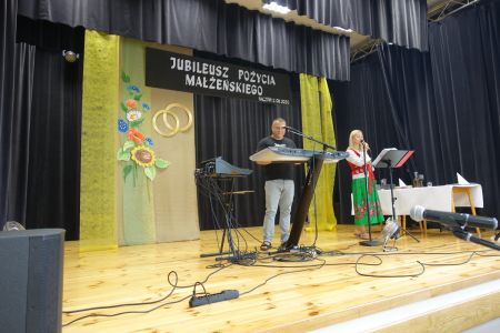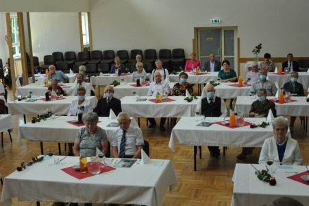 Uroczystość uświetnił zespół „Optymiści”, który zachęcał do wspólnej biesiady ograniczonej ze względu na stan epidemiologiczny. Miłym akcentem był toast, wzniesiony za zdrowie i pomyślność Dostojnych Jubilatów. Mimo obostrzeń Jubileusz przebiegł w miłej atmosferze, pełnej wzruszeń i radości.
