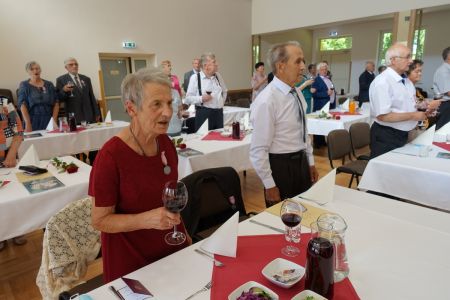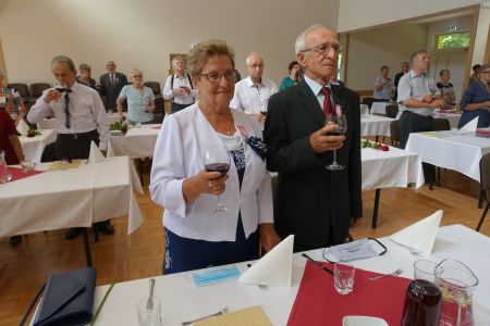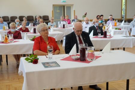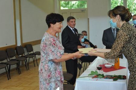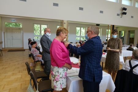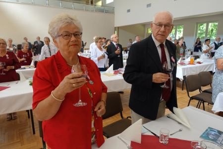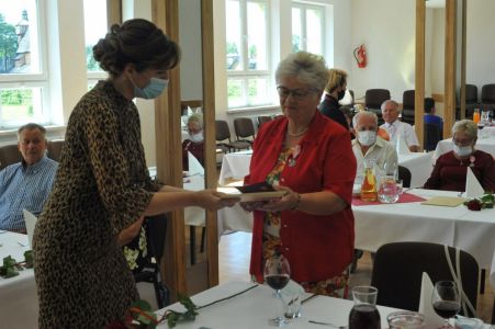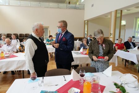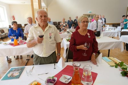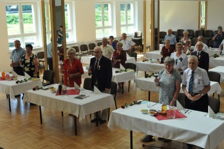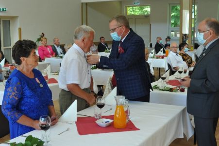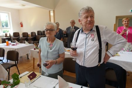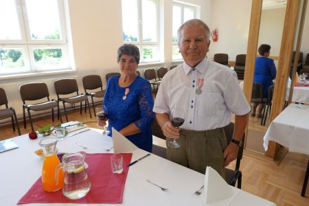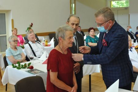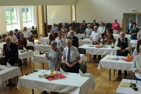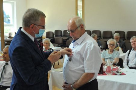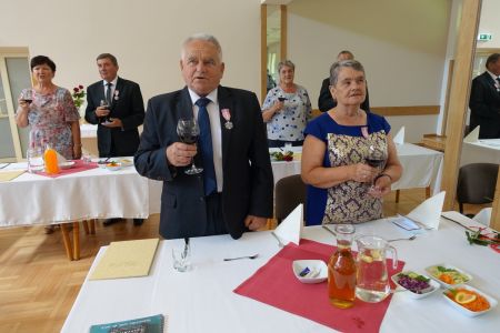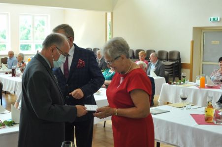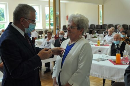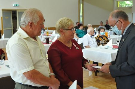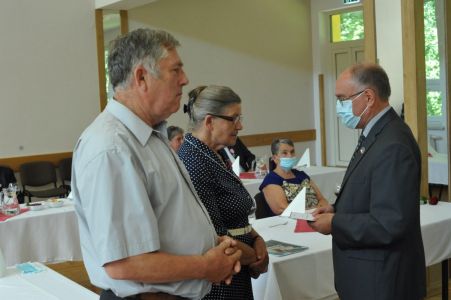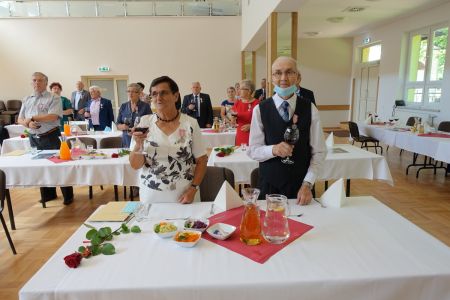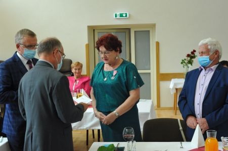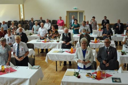 Uroczystość uświetnił zespół „Optymiści”, który zachęcał do wspólnej biesiady ograniczonej ze względu na stan epidemiologiczny. Miłym akcentem był toast, wzniesiony za zdrowie i pomyślność Dostojnych Jubilatów. Mimo obostrzeń Jubileusz przebiegł w miłej atmosferze, pełnej wzruszeń i radości.
