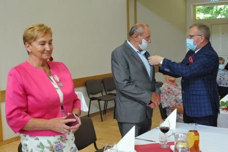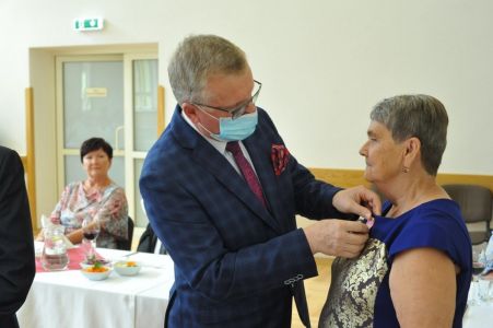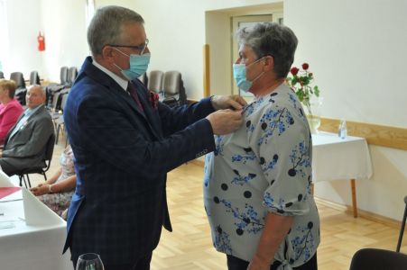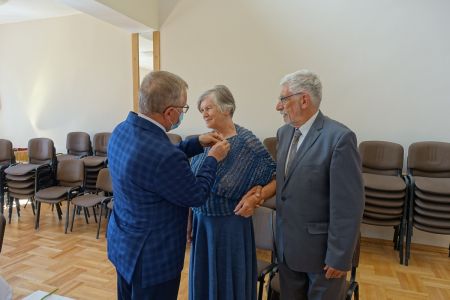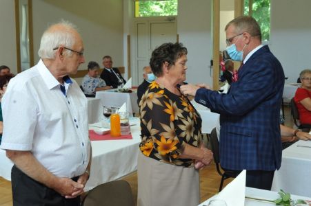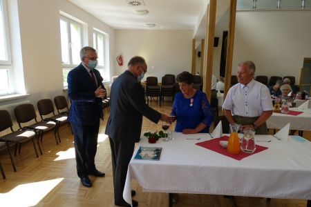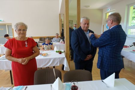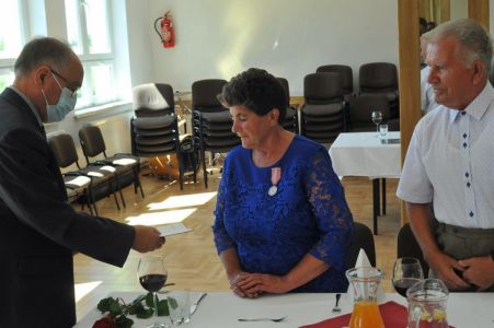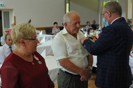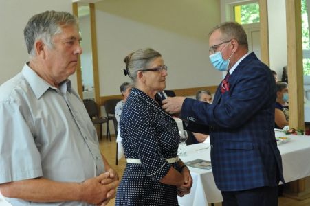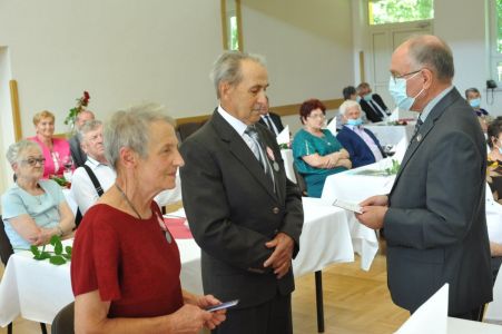 Wójt Gminy Haczów Stanisław Jakiel w imieniu Prezydenta Rzeczypospolitej Polskiej dokonał aktu dekoracji medalami „ Za Długoletnie Pożycie Małżeńskie”, oraz złożył życzenia i gratulacje zaproszonym małżeństwom.