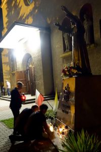 Po koncercie wszyscy udali się pod pomnik Świętego Jana Pawła II, pod którym złożono znicze oraz kwiaty i wspólnie zaśpiewano ukochaną przez Papieża „Barkę”.