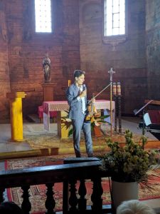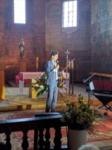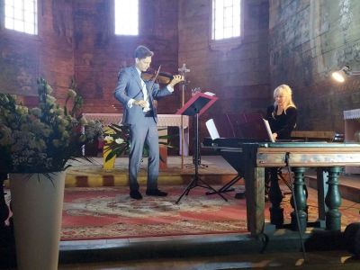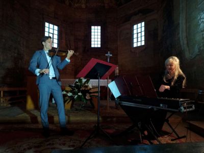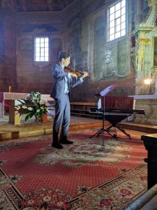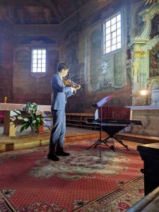 W pierwszej, nieco bardziej poważnej i wyniosłej, publiczność zgromadzona w XIV w. kościele mogła usłyszeć Chaconne g-moll na skrzypce i basso continuo w opracowaniu Leopolda Charlier na skrzypce i fortepian – Vitalego, Sonatę fortepianową, zwaną “patetyczną” c-moll Nr.8, op.13 - cz. 1 Grave - Allegro di molto e con brio – Beethovena, 3. partitę skrzypcową E-dur BWV1006 z cyklu “sei solo” - cz. 3 Gavotte – Bacha oraz koncert skrzypcowy Nr. 4 D-dur KV218, cz. 1 Allegro – Mozarta.