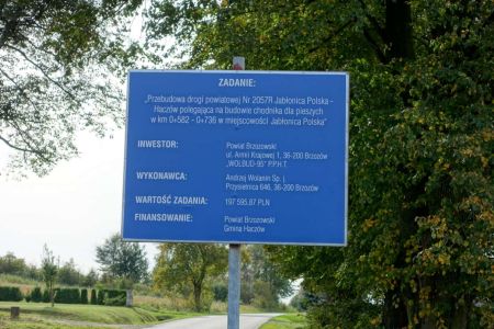 Mimo bardzo trudnego roku, w którym naszym głównym celem jest zapobieganie rozprzestrzeniania się COVID 19, pamiętamy także o poprawie warunków życia mieszkańców. W trosce o rozwój Gminy i bezpieczeństwo wybudowano na terenie Gminy kolejne odcinki chodników. Ze środków własnych Powiatu i Gminy w równych częściach zostały zrealizowane następujące inwestycje: „Przebudowa drogi powiatowej Nr 2006R Haczów – Besko, polegająca na budowie chodnika dla pieszych w miejscowości Haczów” „Przebudowa drogi powiatowej Nr 2057R Jabłonica Polska – Haczów polegająca na budowie chodnika dla pieszych w miejscowości Jabłonica Polska” oraz „Przebudowa drogi powiatowej Nr 2058R Jasionów przez wieś polegająca na budowie chodnika dla pieszych w miejscowości Jasionów”. Ze środków własnych gminy został wybudowany chodnik w przy drodze gminnej nr 115726R Jabłonica Polska – Kombornia w miejscowości Jabłonica Polska „na Wytrząsce".