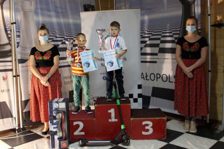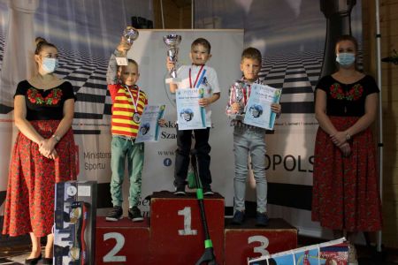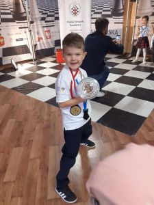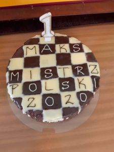 Przez wprowadzenie stanu epidemiologicznego w kraju, w kwietniu tego roku zostały odwołane Mistrzostwa Polski do lat 6. Dla Maksia była to smutna wiadomość, gdyż wyjazd na kilkudniowy turniej to takie mini wakacje. Nie tylko szachy, ale cała otoczka, spotkania z kolegami, gry, zabawy, pobyt w hotelu to wszystko dla dziecka jest nowe i ciekawe. Maksiu świetnie odnajduje się w takiej rzeczywistości. Na szczęście Mistrzostwa Polski obyły się w październiku tego roku, walka była do samego końca. Trzech zawodników zgromadziło taka samą ilość punktów, ale to Maksymilian zdobył 1. miejsce, za sprawą punktacji pomocniczej, gdyż jako jedyny wygrał z całą czołówką! Satysfakcja jest ogromna, jako mama jestem bardzo dumna. Nie obeszło się bez łez po ogłoszeniu wyników i na rozdaniu nagród. Żeby zrozumieć skale sukcesu trzeba mieć świadomość, że na mistrzostwa Polski przyjechały dzieci z czołowych klubów ekstraklasy szachowej. Tym bardziej należą się wielkie brawa i podziękowania dla pana Mariana Lorenca, który jest prezesem i trenerem krośnieńskiego klubu grającego w 2. lidze!!! Pomimo ciągłych sukcesów naszych krośnieńskich szachistów nadal ten sport jest niedoszacowany, nie doceniany, ale mam nadzieję, że niedługo trafi na listę sportów olimpijskich i ta sytuacja się szybko zmieni.