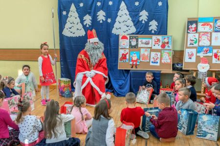 Pomimo braku śniegu, we wczesnych godzinach rannych przybył On do oddziału przedszkolnego, gdzie został bardzo serdecznie przyjęty. Atmosfera spotkania była wyjątkowa i magiczna: dzieci wykonały specjalnie przygotowana dla Mikołaja piosenki, a On rozmawiając z każdym dzieckiem rozdawał prezenty.