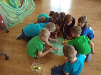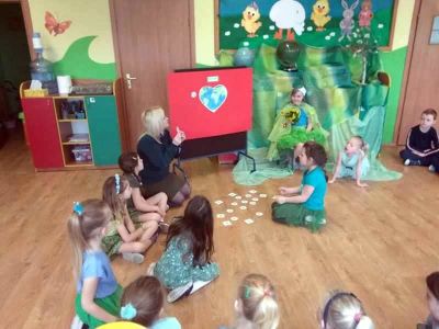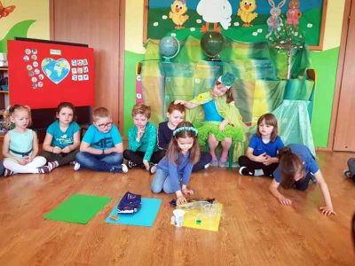 I tak było też w naszym przedszkolu, w grupie Ufoludków. Naszą grupę odwiedziła Pani Ziemia, która opowiedziała Dzieciom, że ma dziś święto i chce żeby zostały jej przyjaciółmi.