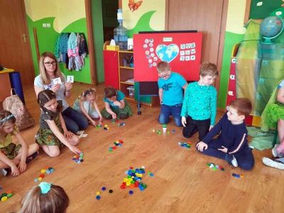 Podczas tego spotkania dzieci uczyły się, co jest dobre, a co złe dla Ziemi. Poznały zasady segregacji śmieci. Obserwowały eksperyment, który miał na celu ukazanie zagrożenia, jakie niesie za sobą wyciek ropy na powierzchni wody i jego wpływ na życie ptactwa oraz zwierząt wodnych. Dowiedziały się też, że można zbierać nakrętki na cele charytatywne, a także wykonywały przeliczenia matematyczne w zakresie 10, z wykorzystaniem umytych nakrętek. Były tez zabawy ruchowe i piosenka pt. "Ziemia - wyspa zielona", podczas której dzieci wykonały układ choreograficzny z wykorzystaniem miotełek do kurzu.