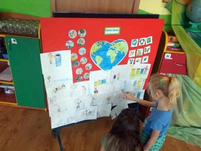 Na koniec zajęć grupa Ufoludków wykonała wspólny plakat z okazji "Dnia Ziemi".