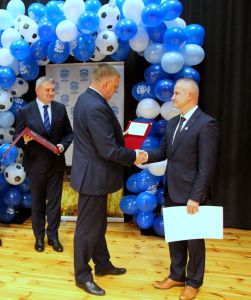 Prezes Klubu Maciej Matusz wraz z Wiceprezesami: Markiem Sobotą i Dariuszem Leczkiem uhonorowali zasłużonych trenerów i zawodników okolicznościowymi upominkami.