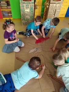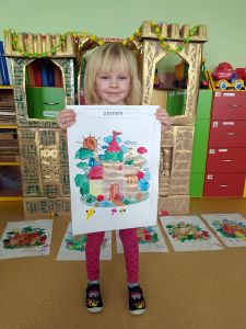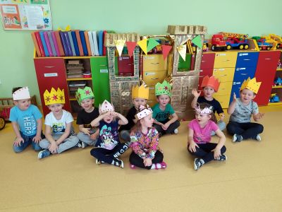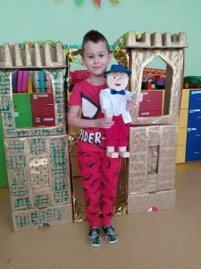 Na przełomie lutego i marca w grupie 4,5-latków realizowałam projekt autorski "Bajka ma moc". W dobie gier komputerowych, płyt i telewizyjnych kreskówek, często zapominamy, jak ważnym elementem w wychowaniu dziecka jest książka. Podstawowym założeniem mojego projektu było rozwijanie kontaktu dzieci z książką. Kontaktu takiego, który by był dla nich wielką przygodą rozwijającą wyobraźnię i stanowiącą radość dzieciństwa. Przedszkolaki poznały w tym czasie różne bajki oraz formy ich przekazywania. Słuchały bajek czytanych przez rodziców ("Czytanie na ekranie"- rodzice przesyłali nagrania bajek, a ja włączałam dzieciom na laptopie). Ja skupiłam się na bajkach terapeutycznych. Chciałam w ten sposób pomóc im poradzić sobie z różnymi przeżyciami, przykrościami, problemami i lękami, które gdzieś tam im czasem towarzyszą. Poruszaliśmy m.in. tematy przyjaźni, inności, niepełnosprawności i odtrącenia. Dzieciaki wcielały się w różne postacie, odgrywały scenki, malowały bohaterów, tańczyły i śpiewały. Wykonały wspólnie kilka prac plastycznych, m.in. zamek z recyklingu i wehikuł czasu.
