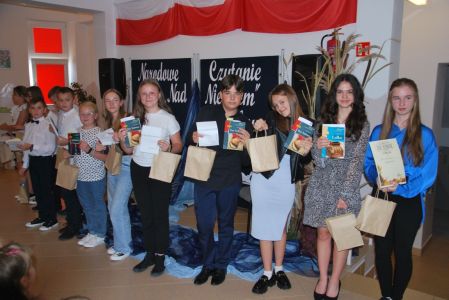 Organizatorzy szkolnego Narodowego Czytania postanowili przyznać dodatkowo nagrody rzeczowe dla trzech klas: 6, 7 i 8 za szczególnie aktywne zaangażowanie się w różne kategorie konkursowe.