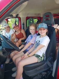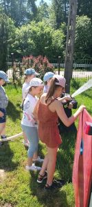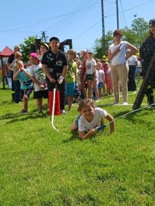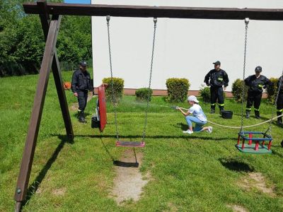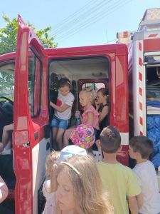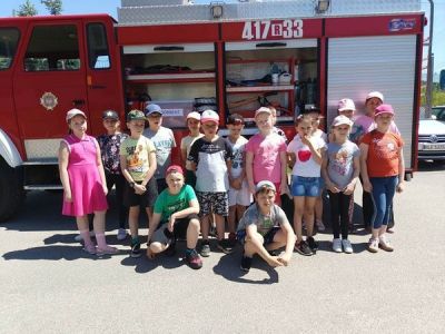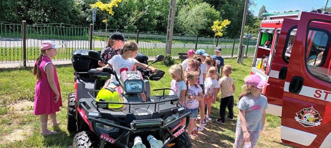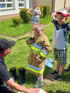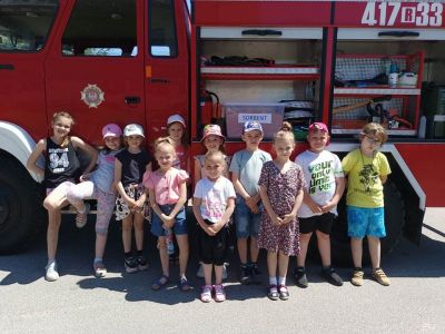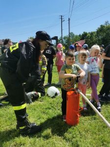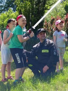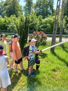 Podczas spotkania omówiono pracę strażaków, a także zaprezentowano pojazdy i sprzęt będący na wyposażeniu jednostki. Dzieciaki mogły także spróbować swoich sił w operowaniu prądem gaśniczym oraz celowaniu do tarcz nalewowych za pomocą hydronetek.