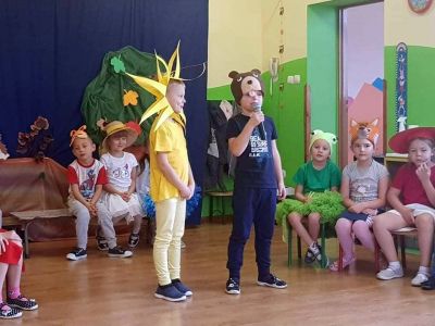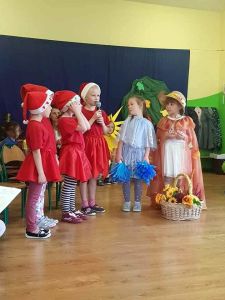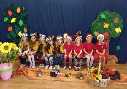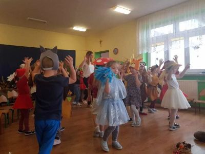Udekorowana sala, zaproszeni goście, czyli wszyscy pracownicy przedszkola i wreszcie wspaniały program artystyczny w wykonaniu dzieci 6-letnich z grup: ,,Mądrych Sówek” oraz ,,Ufoludków”, przygotowany przez panie: Martę Boczar oraz Marzenę Ziemiańską, to wszystko ułożyło się w jedną, niepowtarzalną całość mającą na celu uczczenie ciężkiej pracy nauczycieli oraz wszystkich innych pracowników przedszkola. Bo w przedszkolu 14 październik to nie tylko potocznie nazywany ,,Dzień Nauczyciela”, to święto wszystkich tych, którzy oddają całe swoje serce, aby dzieciom w przedszkolu było naprawdę dobrze. W tymże dniu świętuje więc pani intendentka, panie kucharki, panie woźne, pan konserwator. Bez tych wszystkich osób nauczyciel w przedszkolu nie mógłby wykonywać swoich obowiązków na najwyższym poziomie. Były wiersze, tańce, piosenki, inscenizacja jesienna. Wyjątkowy, jesienny dzień!