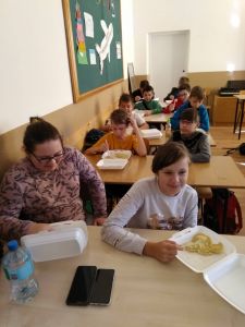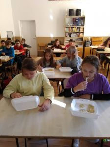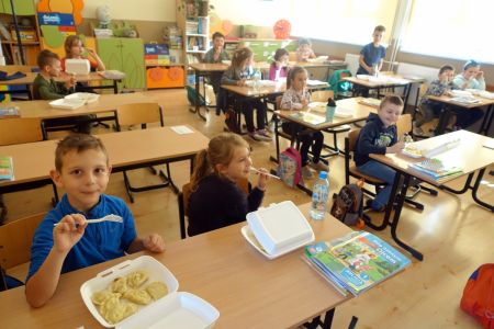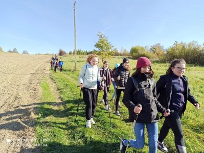 Dzień rozpoczął się od lekcji wychowawczo-profilaktycznych. Nauczyciele wychowawcy przeprowadzili zajęcia, podczas których rozmawiali o zagrożeniach związanych z uzależnieniami. Następnie wszyscy uczniowie udali się na wspaniałe wycieczki po terenach naszej miejscowości. Młodsze klasy z nauczycielami w odpowiednich odstępach wyruszyły na piesze wędrówki w kierunku lasu, a grupy starszych uczniów na szlaki Nordic Walking. Przy pięknej pogodzie można było podziwiać wspaniałe widoki i bezpiecznie spędzić czas w grupach rówieśniczych. Po dwugodzinnym marszu uczniowie powrócili do budynku szkoły, gdzie czekały na nich smaczne pierogi, które zostały przygotowane przez Panie z haczowskiego Koła Gospodyń Wiejskich oraz słodycze.
