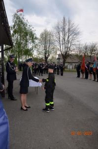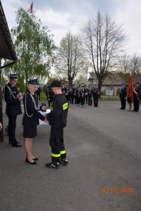 Każdy z nowo przyjętych w szeregi OSP Jasionów strażaków otrzymał z rąk Pani Prezes legitymację członkowską, która także pogratulowała ślubującym druhnom i druhom włączenia w szeregi strażackie, życząc satysfakcji w wykonywania zadań niosących pomoc potrzebującym i kultywowania tradycji strażackich.