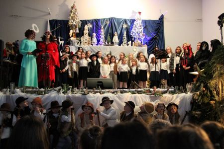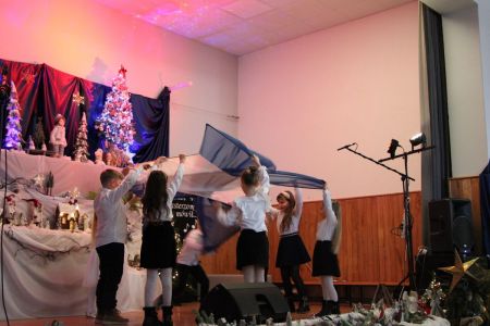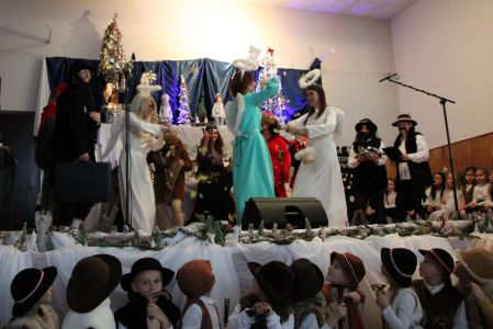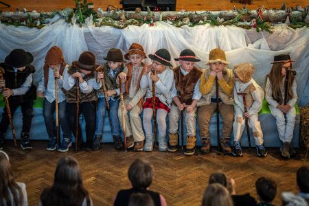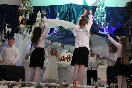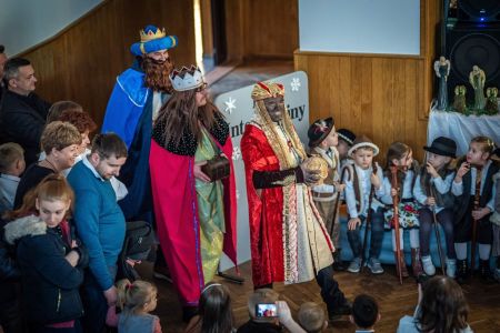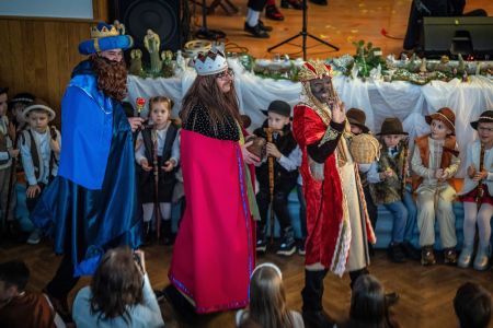 Dużym zaangażowaniem wykazała się również Rada Rodziców z przewodniczą panią Agnieszką Wawrzkowicz, która wraz z trójkami klasowymi włączyła się w realizację projektu przygotowując piękną, bajeczną dekorację nawiązującą do treści całego Koncertu. Barwna kolęda, z którą przybyli rodzice nawiązywała do dawnych tradycji, kiedy to chodziło się od domu do domu przedstawiając czas oczekiwania na Jezusa. Można było zobaczyć barwny korowód cyganek, Żyda, turonia a także orszak Trzech Króli. Rodzice również dołączyli do wspólnego kolędowania.